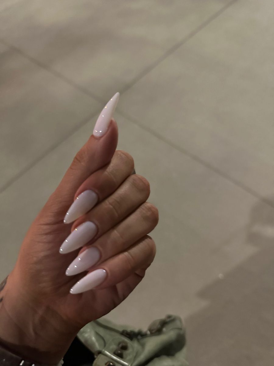 - Milky White Powder Acrylic, Shape: Oval, Length: Medium