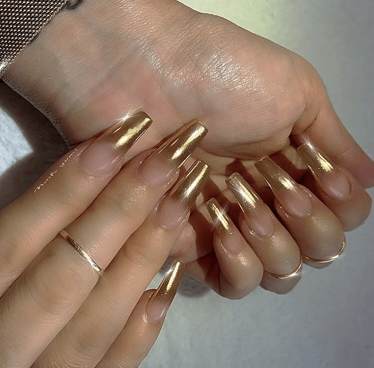 - Chrome Gold Ombre From Tip, Shape: Stiletto, Length: Medium